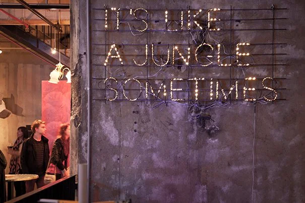 Creative exhibition group 7 With Another asked director Anthony Potter to collaborate on an art work with Graphic Designer Alexandra Naghavi. Together, they came up with the concept to make a fully-recycled, illuminated typographic sculpture.